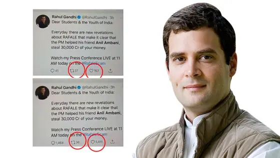 Is it possible to boost 37 retweets to a whopping 1,798 in a second? If you are Rahul Gandhi, you can very well perform that magic. Or more precisely, have it performed to show the extent of support he and the Congress has on social media. This refers to a tweet by the Congress president in which he keeps on ranting about what he calls the "Rafale scam"
