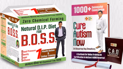 The book Cure Autism Now and the Natural D.I.P. Diet for B.O.S.S. Box are available on major online platforms including Amazon, Flipkart, and Meesho, as well as on www.biswaroop.com/shop. (SGP)