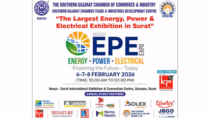 The Southern Gujarat Chamber of Commerce and Industry (SGCCI), in association with the Southern Gujarat Chamber Trade and Industries Development Centre, is organizing the ‘Energy–Power–Electrical Expo 2026’ from 6th to 8th February 2026, between 10:00 am and 7:00 pm, at the Surat International Exhibition and Convention Centre, Sarsana, Surat.