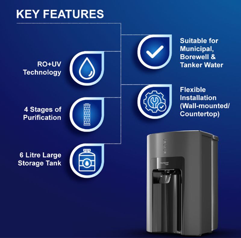 Aquaguard Glory 6L RO, UV and UF Water Purifier that incorporates Active Copper Technology (Black)