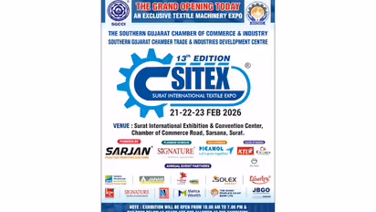 The Southern Gujarat Chamber of Commerce and Industry (SGCCI) has organised the grand “SITEX – Surat International Textile Expo 2026” in Surat from 21st to 23rd February 2026 at the Surat International Exhibition and Convention Centre (SIECC), Chamber of Commerce road, Sarsana, Surat.