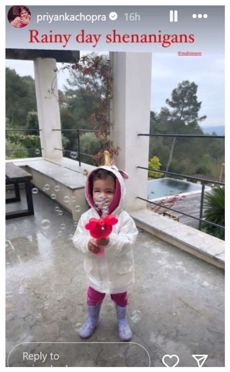In addition to her work updates, Priyanka shared endearing snapshots of her daughter, Malti Marie, indulging in rainy day antics and relishing ice cream while sporting stylish shades. These heartwarming moments offer fans a peek into the actress's life beyond the silver screen.