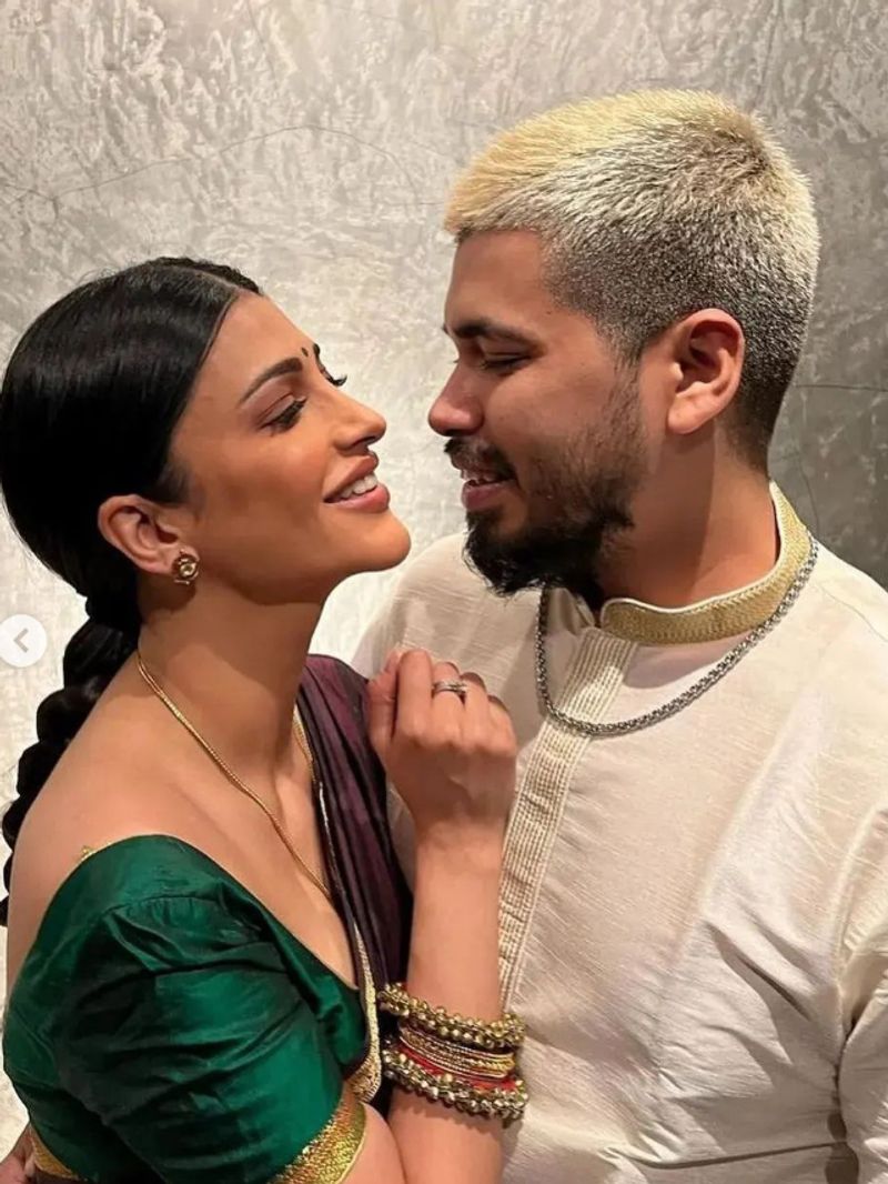 Actress Shruti Haasan and visual artist Santanu Hazarika, who had been in a relationship for a significant period, have reportedly parted ways. The couple, who had been living together for the past couple of years, seems to have unfollowed each other on social media, as indicated by a recent post from the paparazzo account Viral Bhayani. Although neither Shruti nor Santanu have officially confirmed the breakup, recent developments suggest a rift in their relationship.