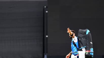 Kohli walks on the ground before taking part in a batting session
