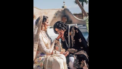 Saima opted for a sherwani, traditionally worn by male grooms from South Asia. They went for similar vibes during their Mehendi (pre-wedding ceremony) too.