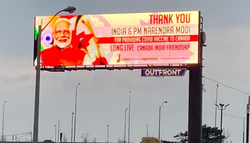 The billboards which have been put up, read, "Thank you India and PM Modi for providing Covid vaccines to Canada. Long live Canada-India friendship".