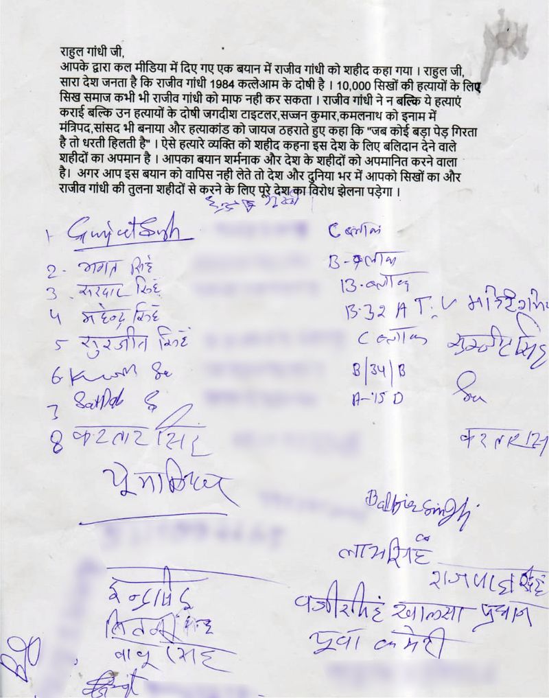Another signatory is Surjeet Singh. When MyNation contacted him he didn't withhold his emotions either, "We have a great problem in Rahul Gandhi calling Rajiv Gandhi a martyr. He didn't call him one all this while. But just before the election, he calls his father a martyr, someone who oversaw the anti-Sikh genocide. I appeal to my Sikh brothers not to vote for the Congress.