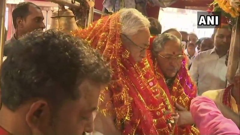 The Janata Dal (United) leader, clad in a white kurta, was seen doing aarti in front of the goddess.
