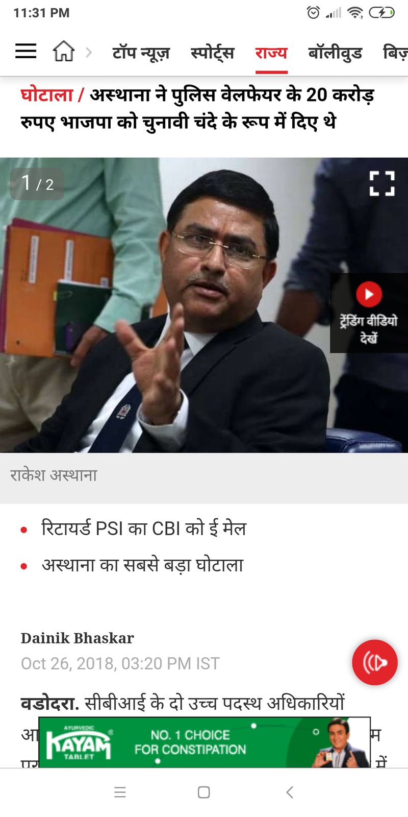 Some media organisations reported that a retired police sub-inspector wrote an email to the CBI saying that Asthana diverted the fund from the Police Welfare Fund when he was posted as Surat police commissioner — a time when Narendra Modi was the Gujarat Chief Minister.