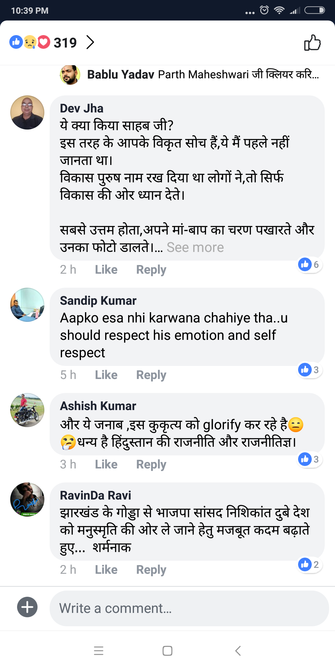 New Delhi: If this naked display of feudalism is difficult to believe, just log into Facebook and check the timeline of BJP Member of Parliament Nishikant Dubey’s verified account.