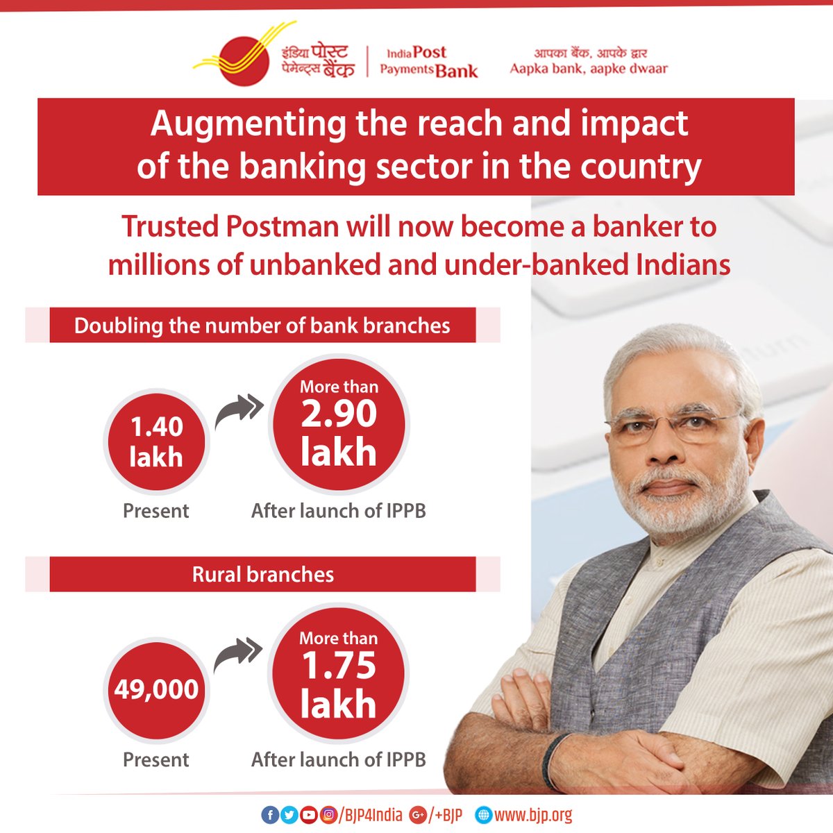 IPPB will offer a range of products such as savings and current accounts, money transfer, direct benefit transfers, bill and utility payments, and enterprise and merchant payments. These products and related services will be offered across multiple channels, using the bank's state-of-the-art technology platform.