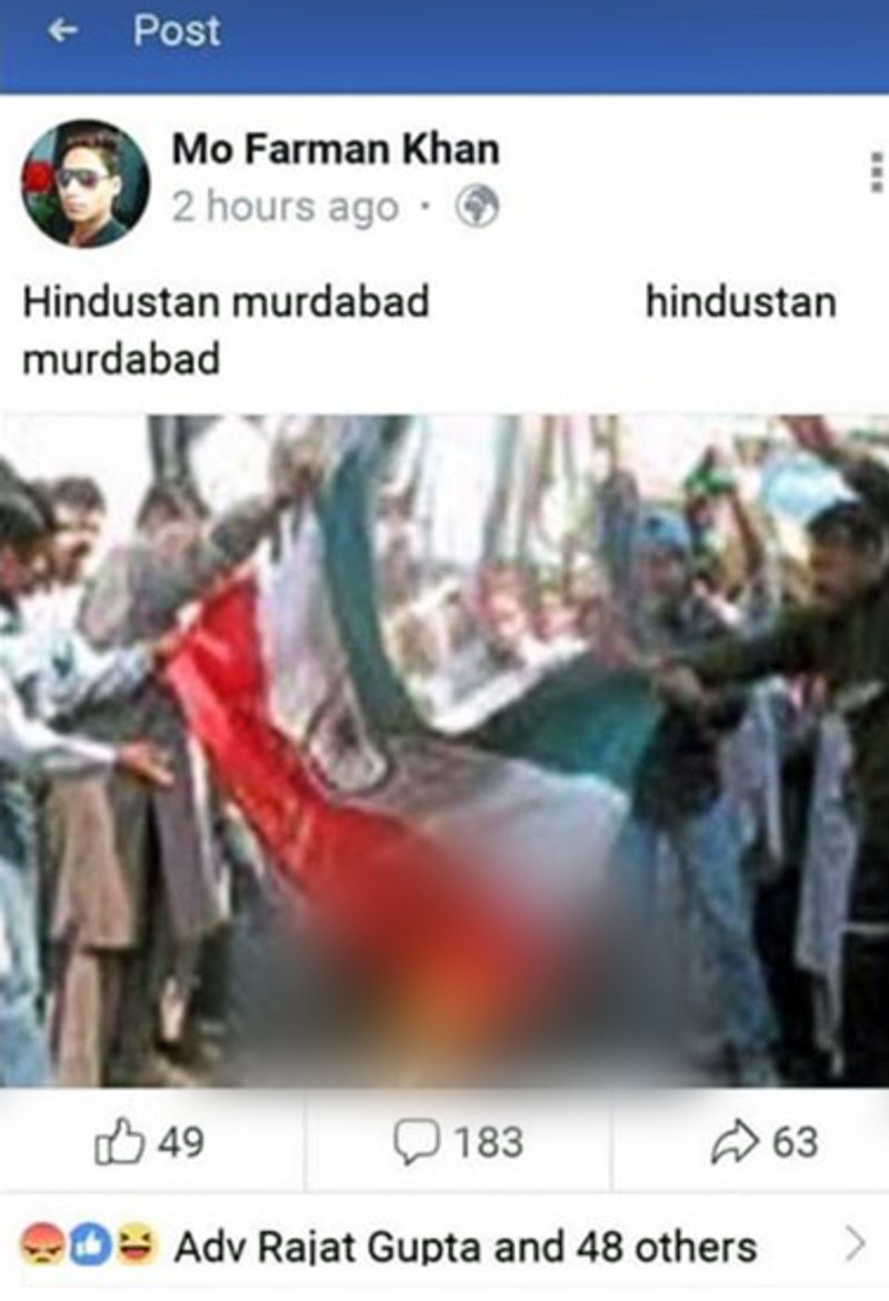 Khan, a student at Islamia Inter college in Shahajanpur, posted a Facebook post saying, "Hindustan Murdabad" twice. It infuriated the people, and a complaint to the cops followed. On Monday, the Shajahanpur police tweeted that within 48 hours of the anti-India post by Khan, he has been arrested. He has been booked under stringent Sections of the IPC including 124A, which is the law dealing with sedition.