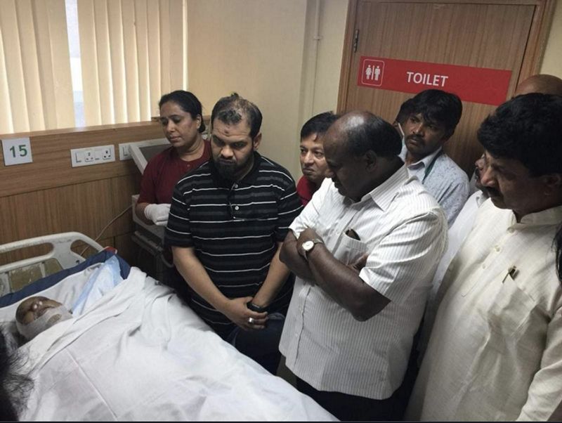 It is said that the paramedical staff who accompany him all the time rushed him to the nearby Santosh Hospital after he fell from the car. He was initially admitted to Santhosh Hospital, but was later shifted to Fortis Hospital in Bengaluru.