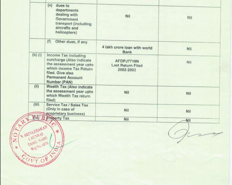 Besides this, he claimed that he owned an apartment worth Rs 10 lakh in 2009 in Chennai.