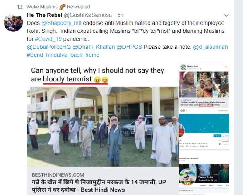 The website further added that earlier, Abu Dhabi resident Mitesh Udeshi was sacked for his posts on a sensitive issue.