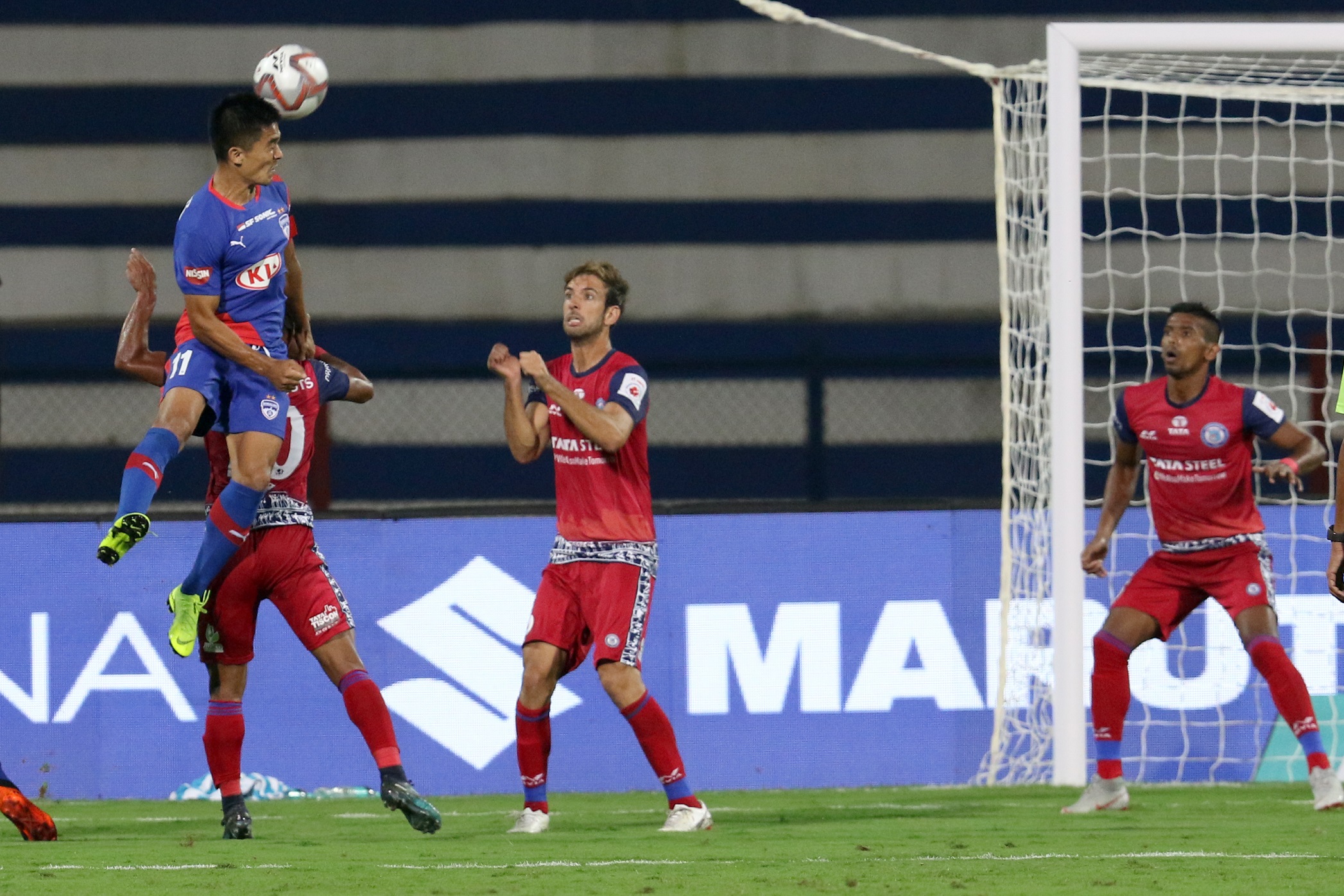 Miku was proving to be a difficult for the Jamshedpur defence. He ran in behind the defence and squared a good through-ball across the face of goal, inviting Chhetri who failed to make a connection.