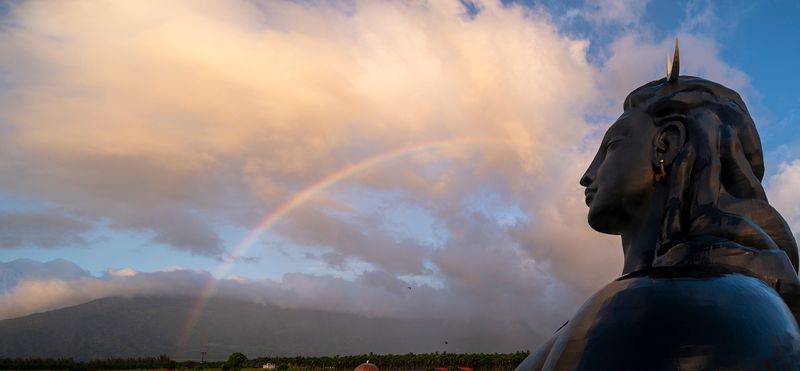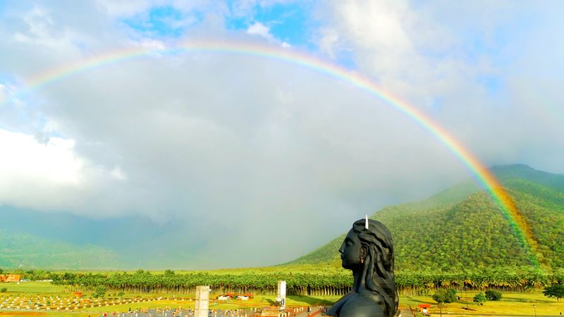 With a global pandemic looming over the world, a sense of gloom has dawned upon us. All the activities have taken a hit, economies are shrinking and there is a psychological blow that humans are enduring in these times of crisis. But as humans are under a lockdown, the nature is shining in its full glory. Here are some of the spectacular pictures from the Isha Yoga Center in Tamil Nadu where a stunning rainbow shined around the iconic face of “Adiyogi” who is the Source of Yoga.