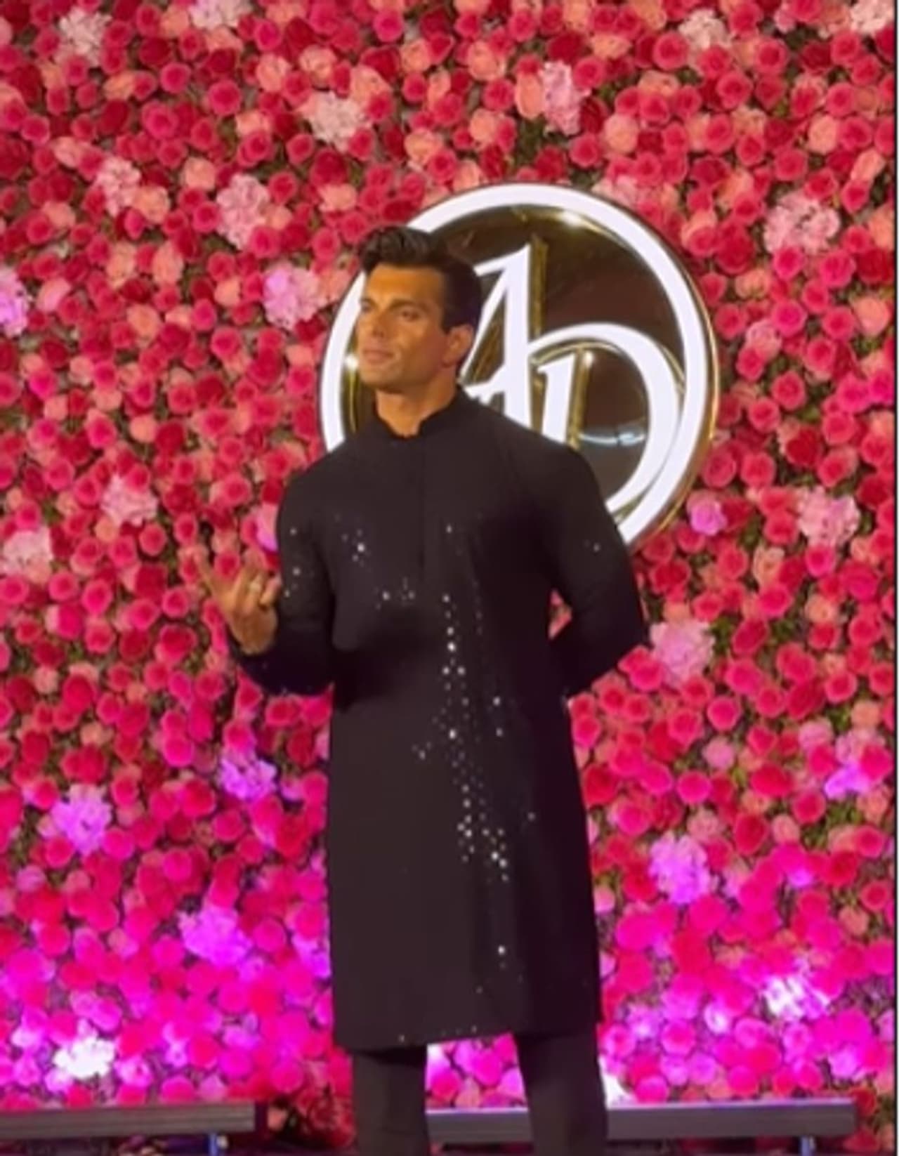 BFF of the bride, Karan Singh Grover also attended the night in a sparkly and amazing black kurta.