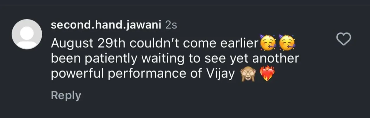One added, “August 29th couldn’t come earlier been patiently waiting to see yet another powerful performance of Vijay."
