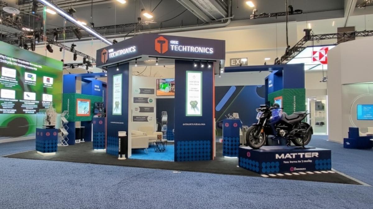 The booth of SRK Techtronics features manufacturing-ready technology demonstrations, including MATTER-built mobility systems and a rare-earth-free Variable Flux Electric Drive displayed as a technology reference. These exhibits illustrate the class of complex next-generation architectures that SRK’s AI-enabled manufacturing ecosystem is designed to scale, subject to techno-commercial readiness.