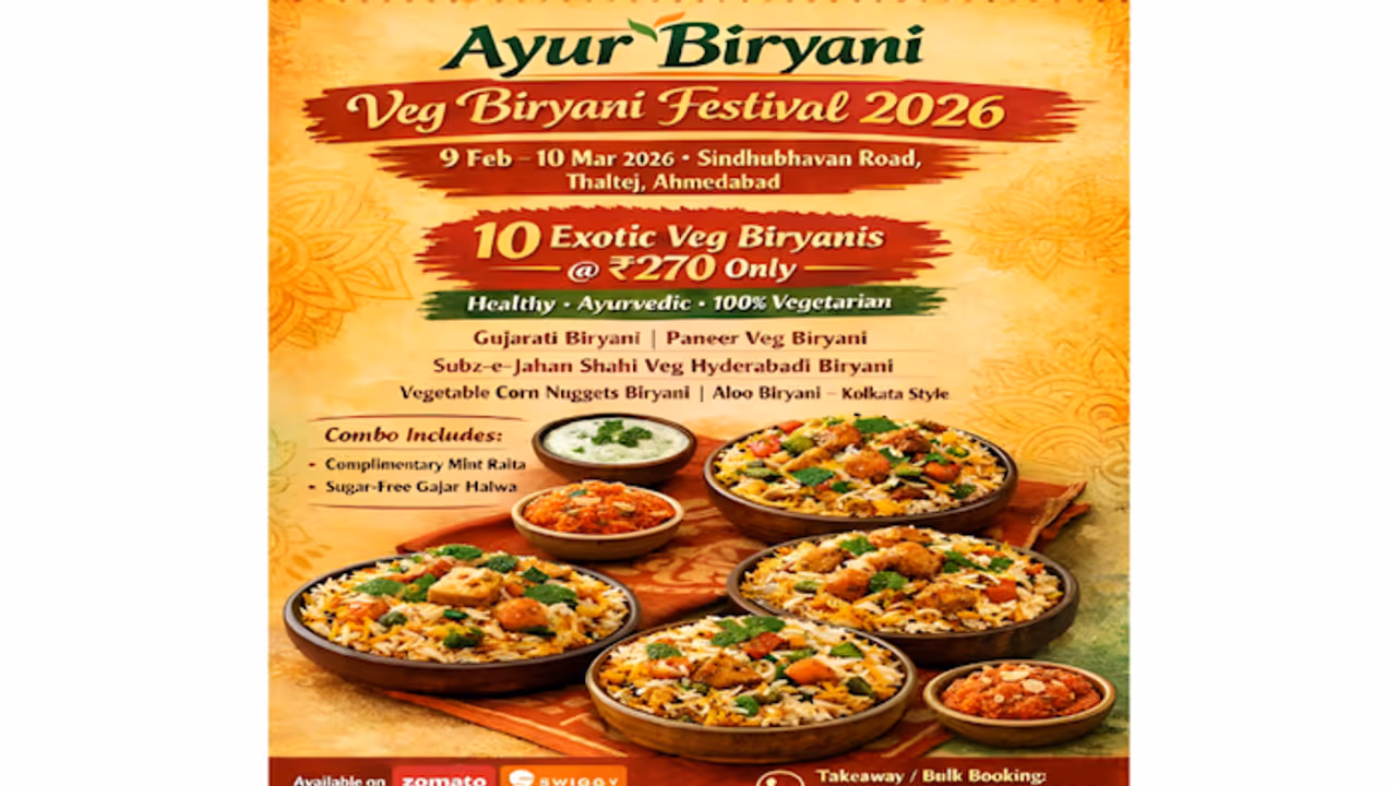 This February, Ahmedabad prepares for a culinary revolution that masterfully marries the indulgence of royal flavors with the ancient wisdom of Ayurveda. Ayur Biryani, the pioneering wellness-focused brand by Agravatam Food, www.agravatam.com, is proud to announce its month-long Vegetarian Biryani Festival 2026. The event will take place from 9th February to 10th March 2026, hosted exclusively at the Dr. Agravat Wellness Center on Sindhubhavan Road, Thaltej.