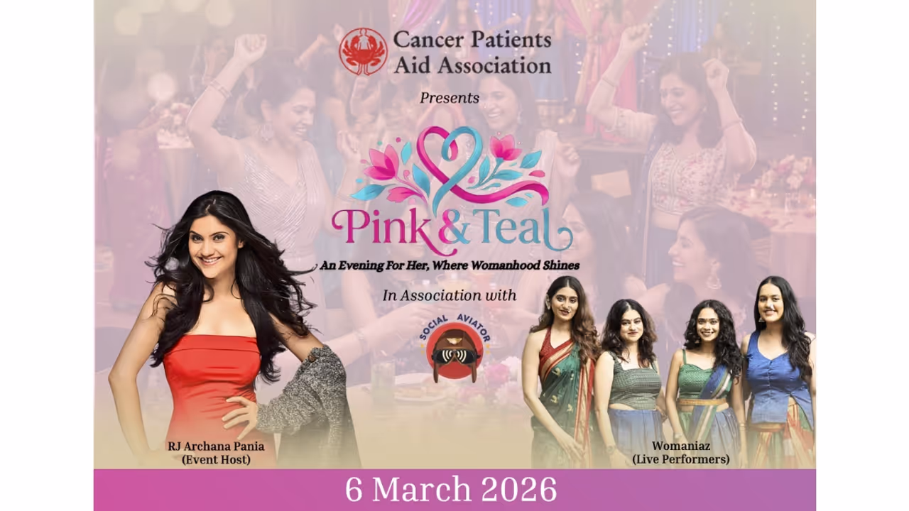 Cancer Patients Aid Association's Pink & Teal event at Taj Lands' End Mumbai on March 6, 2026, supports women cancer patients via empowerment gala.