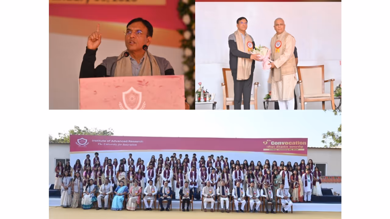 Institute of Advanced Research University Gandhinagar 9th Convocation confers 303 degrees, 12 PhDs; Labour Minister Mansukh Mandaviya chief guest.