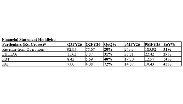 Profit Before Tax for Q3FY26 rose sharply by 48% QoQ to ₹8.42 crore. For the nine-month period, PBT grew by an impressive 54% YoY to ₹19.30 crore.