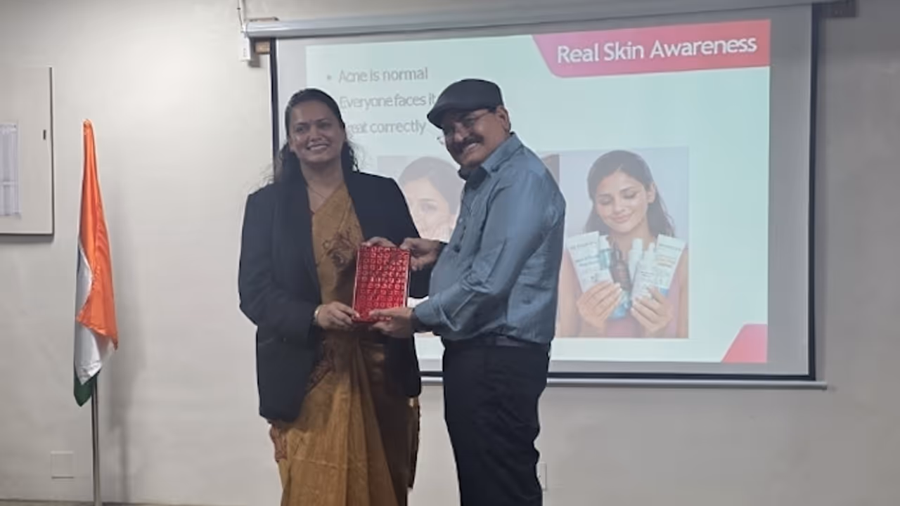 Students actively participated in the session and showed keen interest in daily skin care routines and dietary guidance. Dr. Jagdish Sakhiya also shared simple and practical daily tips for acne, hair fall, and personal hygiene. He emphasized the importance of a balanced diet, adequate water intake, and a healthy lifestyle so that students can better understand the connection between internal health and external skin.