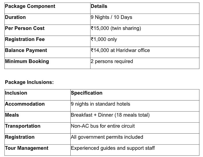 Pilgrims can secure their spot with a minimal ₹1,000 registration amount, with the balance of ₹14,000 payable at the Haridwar office before departure.
