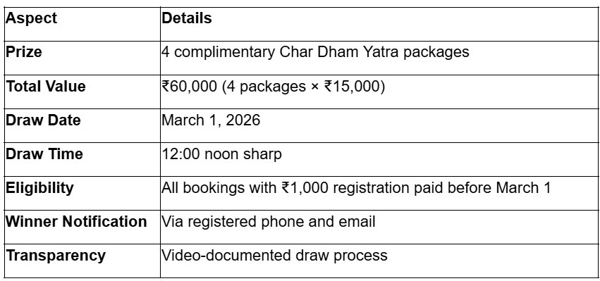 In a move to make the pilgrimage more accessible, Royals Services (Royals Yatra) will conduct a lucky draw on March 1, 2026, at 12:00 noon at their Haridwar office.