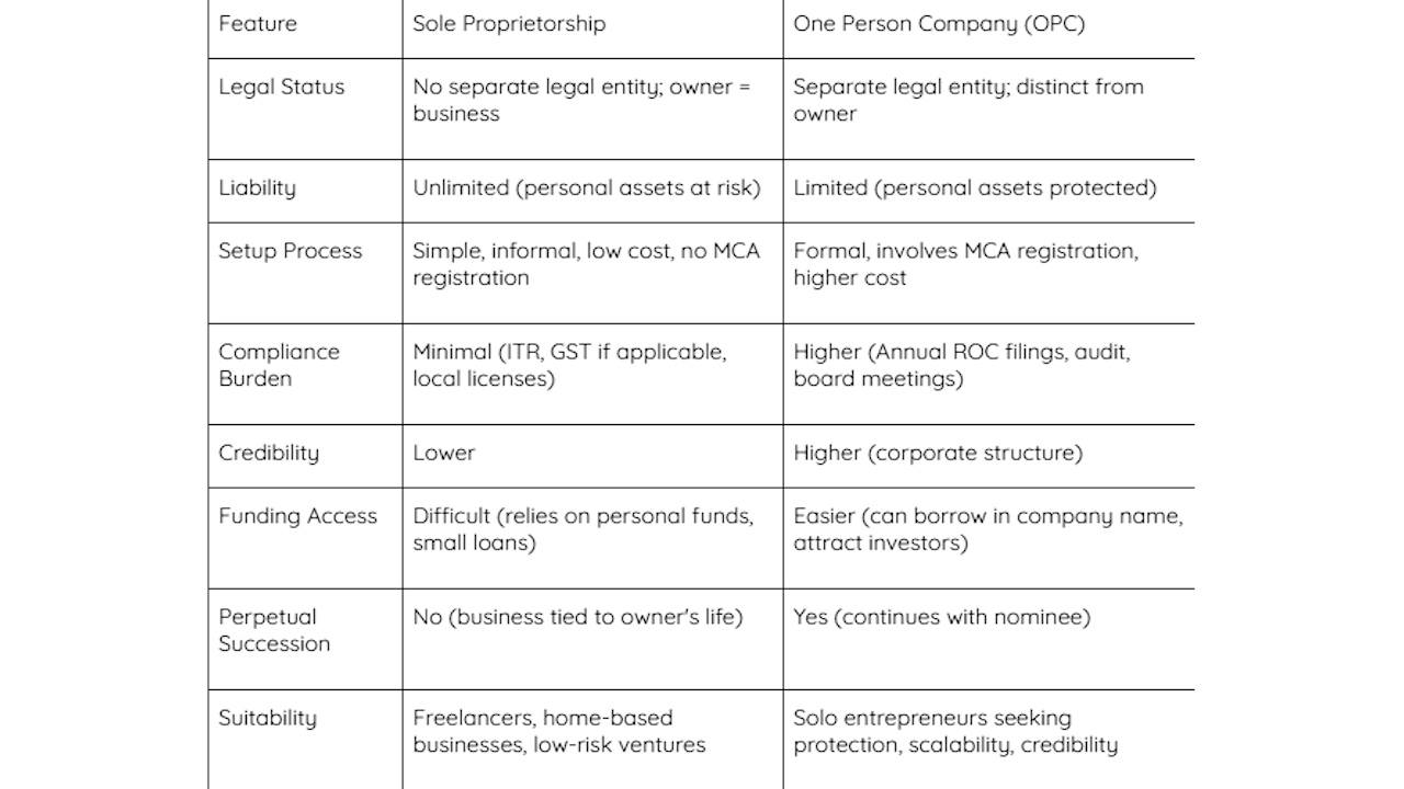 Enhanced Credibility and Funding Access: Being a registered company under the Companies Act, an OPC generally enjoys higher credibility among banks, investors, and vendors. This can make it easier to secure loans or attract investments compared to a proprietorship.