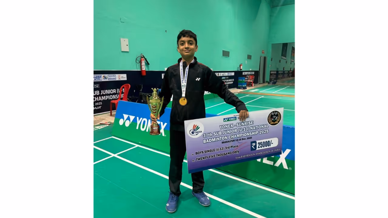 Vivaan is a student trainee at the Maneet Pahuja Badminton Academy, Surat, which is celebrating his strong performance at the national level. Having occupied the 5th position in the tournament, Vivaan remained highly focused and displayed strong fighting spirit to secure a place on the podium, highlighting his growing strength in Indian badminton.
