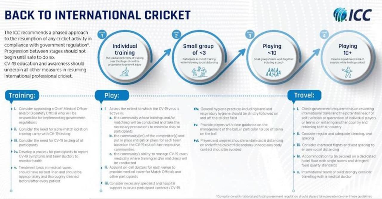 Here are the key guidelines from ICC for resumption of cricket