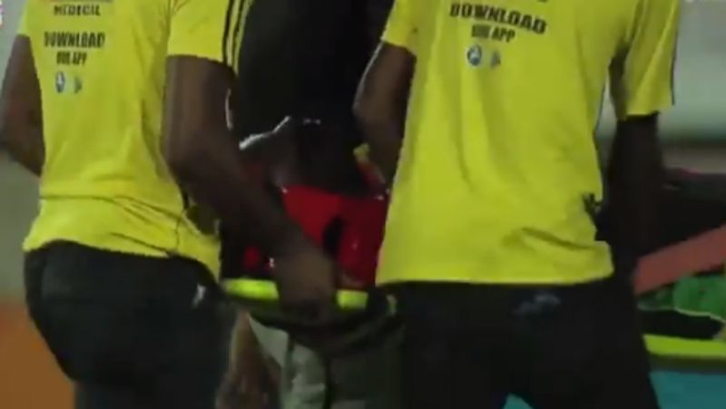 With a neck brace, Russell was stretchered off the ground. The incident happened in the 14th over of the Tallawahs innings.