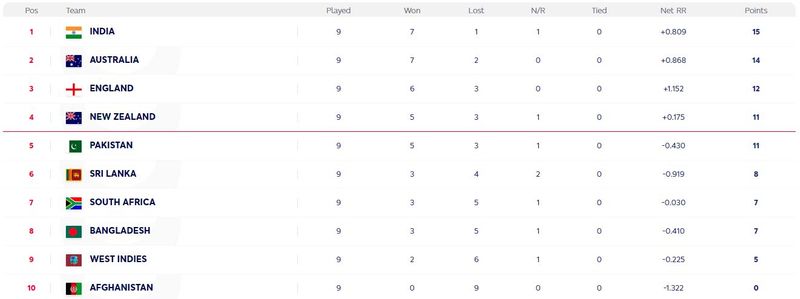 India, Australia, England and New Zealand have qualified for the semi-finals. India topped the points table with eight wins, followed by Australia, England and the Kiwis.