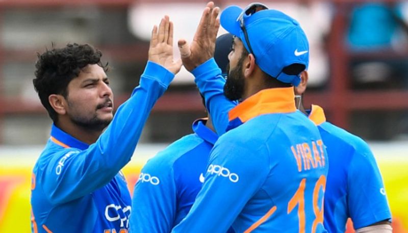 Kuldeep gave India the breakthrough as he dismissed dangerman Gayle who dragged the ball onto his stumps. Hope came in two overs later, but rains also came back to force the players to the dressing room once again.