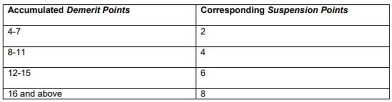 4. The Level 2 offence will equate to four (4) Demerit Points.