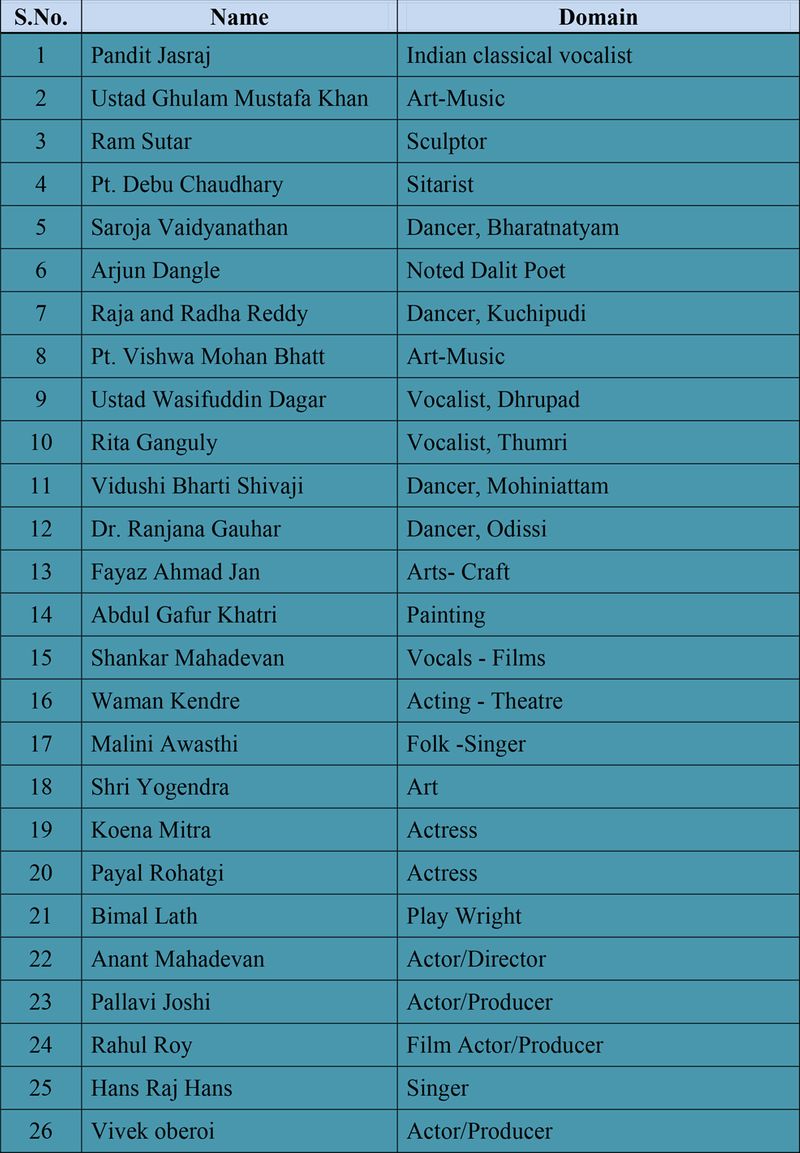Some prominent artistes who issued the statement were: Amol Palekar, Anurag Kashyap, Dolly Thakore, Lillete Dubey, Naseeruddin Shah, Abhishek Majumdar, Anamika Haksar, Navtej Johar, MK Raina, Mahesh Dattani, Konkona Sen Sharma, Ratna Pathak Shah and Sanjna Kapoor.