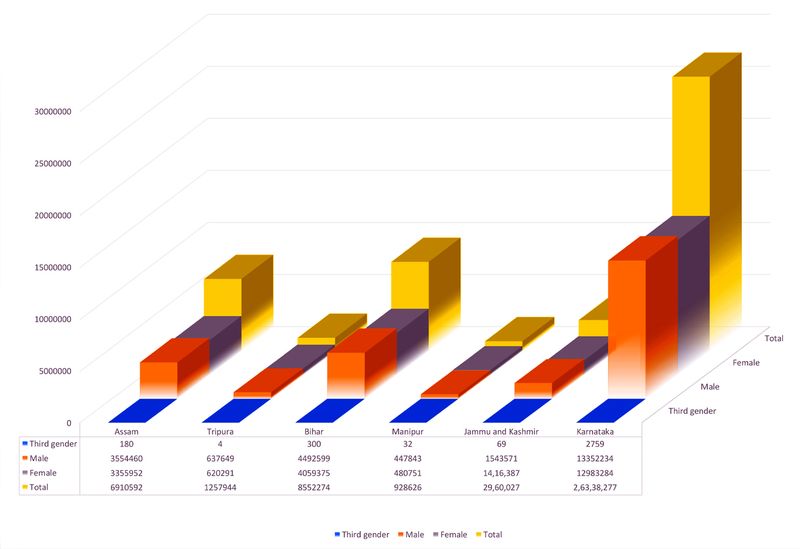 Karnataka has a total electorate of 2,63,38,277out of which 1,33,52,234 are male electors, 1,29,83,284are female electors and 2,759 belong to the third gender category. There are 30,410 polling stations set up in the state.
