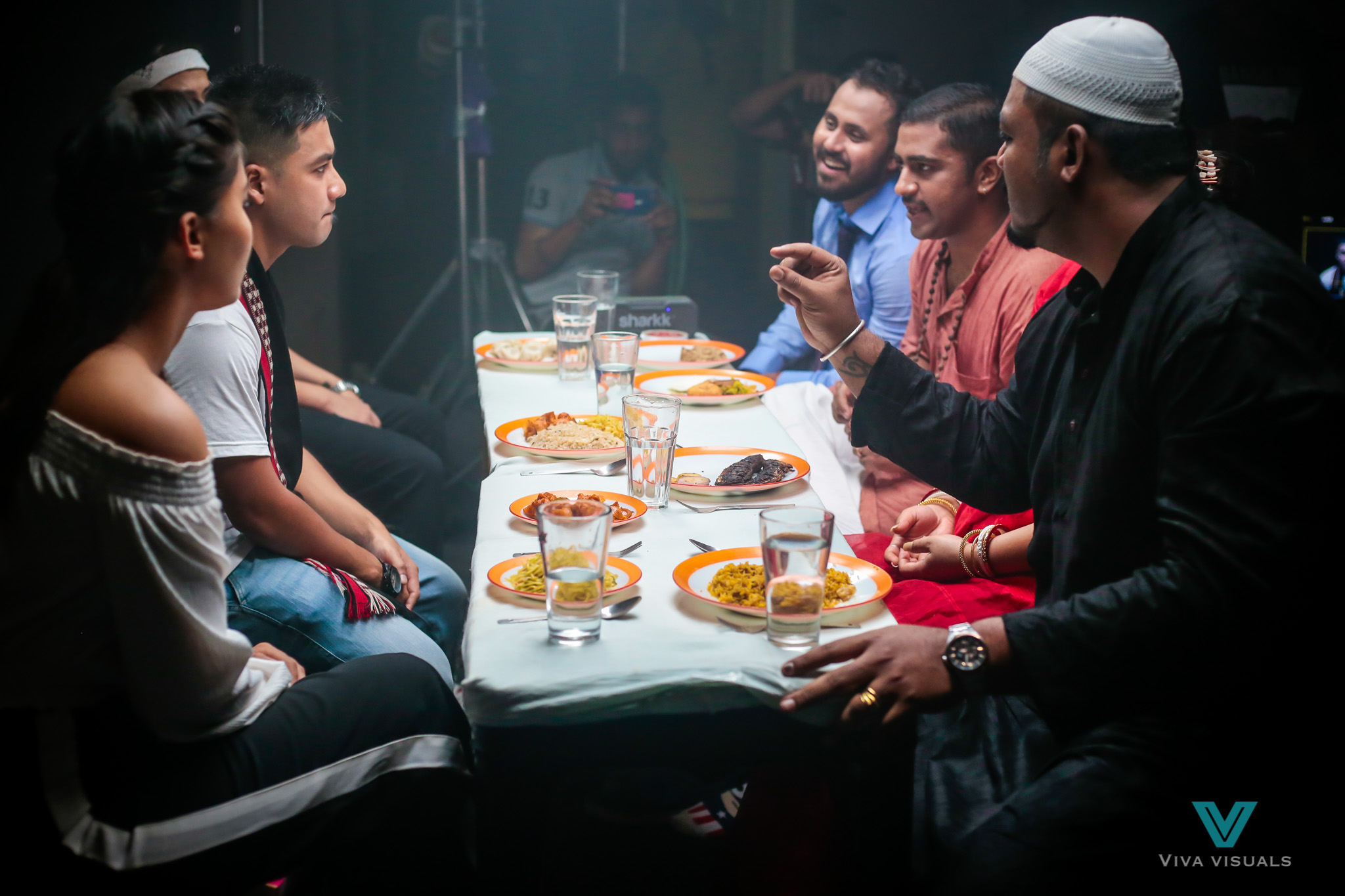 It took him 10 days and a group of friends from all over the country to get the lip sync act right; there are only two people who he picked to rap among those that you see arguing on either side of the table in the video.