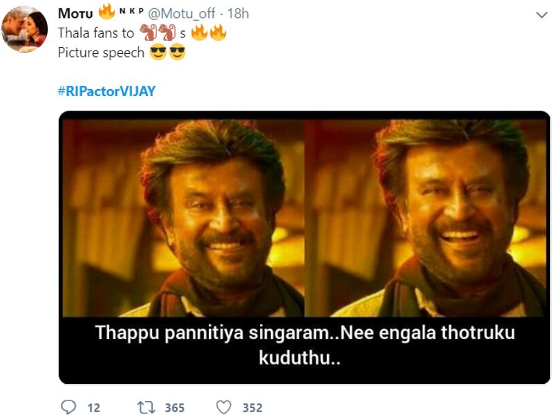 A large number of the tweets with this hashtag were in support of Thala Ajith, indicating that this could be a result of the rivalry between fandoms of Ajith and Vijay, two of the most popular stars in Tamil cinema.