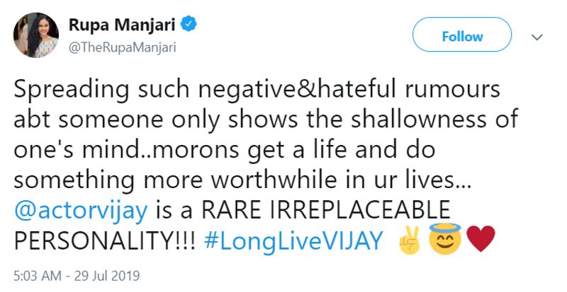 Vijay fans retaliated by trending the #LongLiveVijay and urged fans to stop the spread of such negativity. Some even tweeted anecdotes of the Vijay’s kindness with the caption that the hate can be suppressed with kindness.