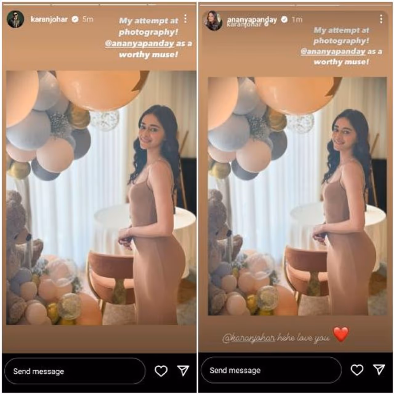 In response, Ananya Panday reshared the post on her Instagram story, expressing her affection with the words, “@karanjohar hehe love you,” accompanied by a red heart emoji.