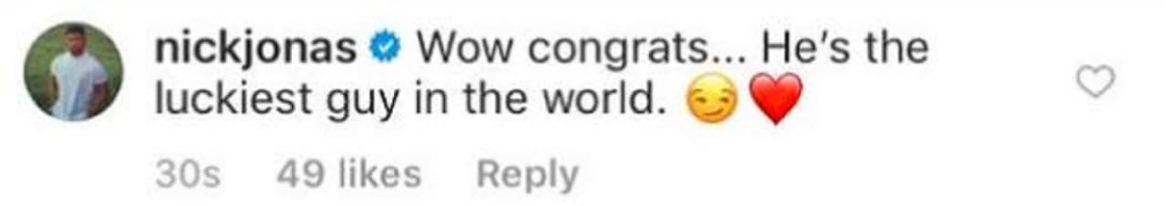 His comment goes: “Wow, Congrats... He's the luckiest guy in the world with heart emoticons.”