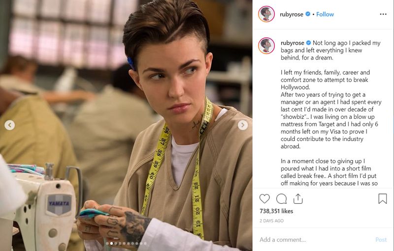 Ruby Rose, an actress in the Netflix series Orange is the New Black took to Instagram to write a long post on her wonderful experience as the last season of the prison drama premiered on July 26