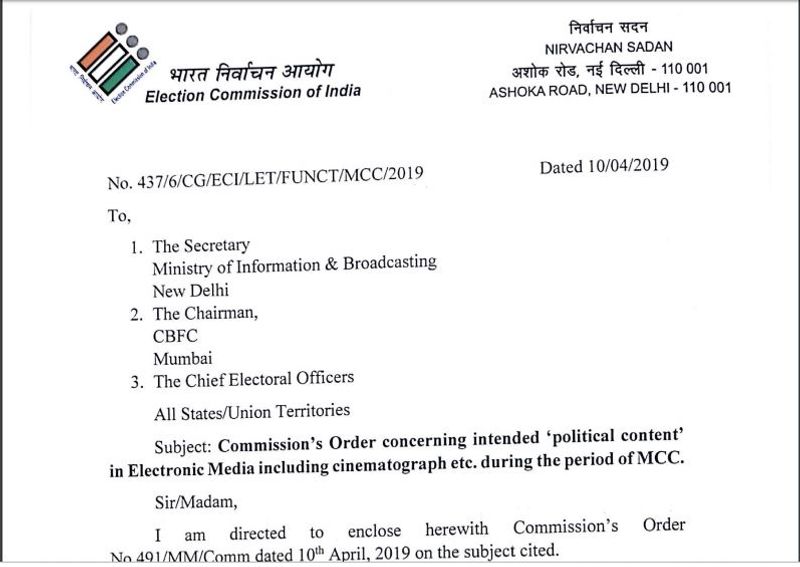 The EC cited the extraordinary powers under Article 324 of Constitution to stop the release of the biopic. Ironically, the Central Board of Film Certification (CBFC) had issued a 'Universal' certificate to the film ahead of its release.
