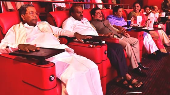Apart from the Congress leaders, BJP leader KS Eshwarappa was also seen in the Orion Mall where Seetharama Kalyana movie was screened. Karnataka chief minister Kumaraswamy and Eshwarappa were seen in jovial mood