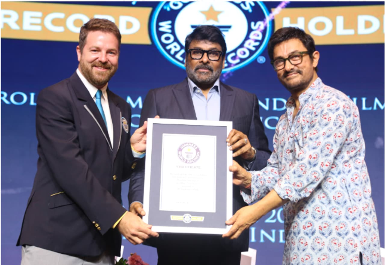 Bollywood superstar Aamir Khan presented the Guinness World Record to Chiranjeevi, who has starred in 156 films and delivered stunning dance performances in hundreds of songs. No other actor has danced to as many songs as Chiranjeevi. The event was attended by numerous celebrities, directors, and producers who have worked with him. Representatives from the Guinness Book, alongside Aamir Khan, jointly honoured Chiranjeevi with the award. The Guinness World Record recognized him as the 'Most Prolific' Indian star.