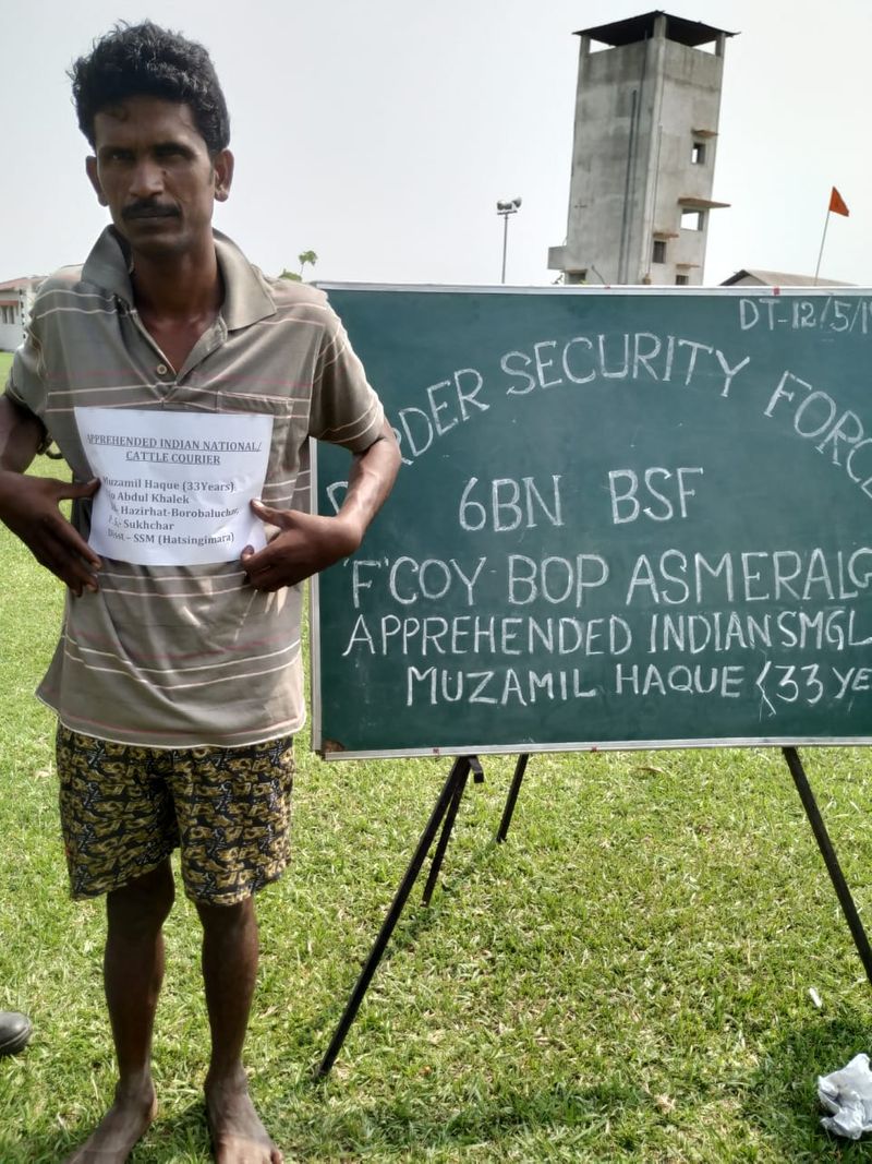 The apprehended cattle smuggler was identified as 33-year-old Mazumil Hoque. The BSF troops handed him over to Kharuabanda police for further legal action.